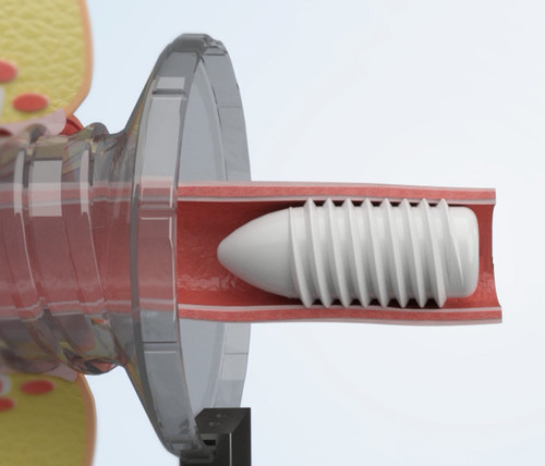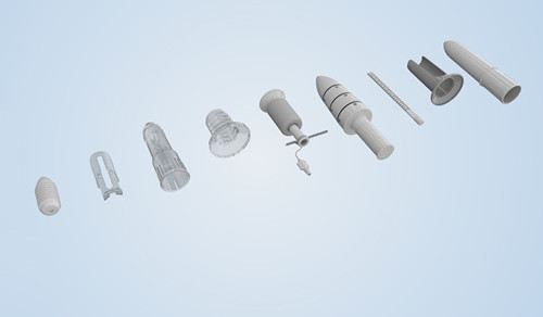 一、螺纹扩肛器 1. 产品介绍: 螺纹扩肛器用于直肠低位检查和辅助手术,是TAM系统的核心组件。使用时从患者肛门插入,撑开肛门括约肌和直肠,可提供较宽阔的手术视野,配合专用支架、光源、超声刀、持针器等手术器械,进行肿瘤切除、肠道手工吻合等操作。扩肛器外表面设有螺纹,将原本直插进入肛门的方式改为旋转进入,套管不易从患者肛门滑脱,省去了缝合、拆线步骤,简化了手术操作,减轻了患者痛苦。 耗材由螺纹套管、管芯和肠壁支撑板组成,材质均为医用级聚碳酸酯。根据螺纹套管旋入段长度划分规格,有30mm、40mm、50mm、60mm和70mm五种,每个规格(一个独立包装)包含螺纹套管内径为35mm、40mm和45mm的组件各一套。 2. 图示: 2.1 产品外观