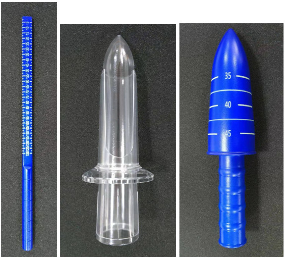 a. 测量尺 b. 套管和管芯 c. 肛门扩张量测量锥