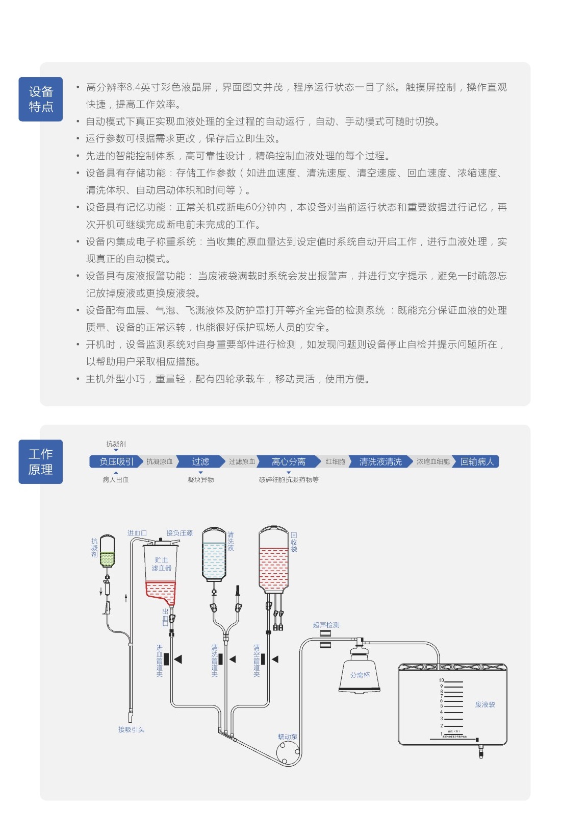 去除游离血红蛋白 去除抗凝剂 去除激活的凝血因子 去除红细胞基质 最大程度回收血液中的红细胞,使患者获得可靠的、健康的自体血液。